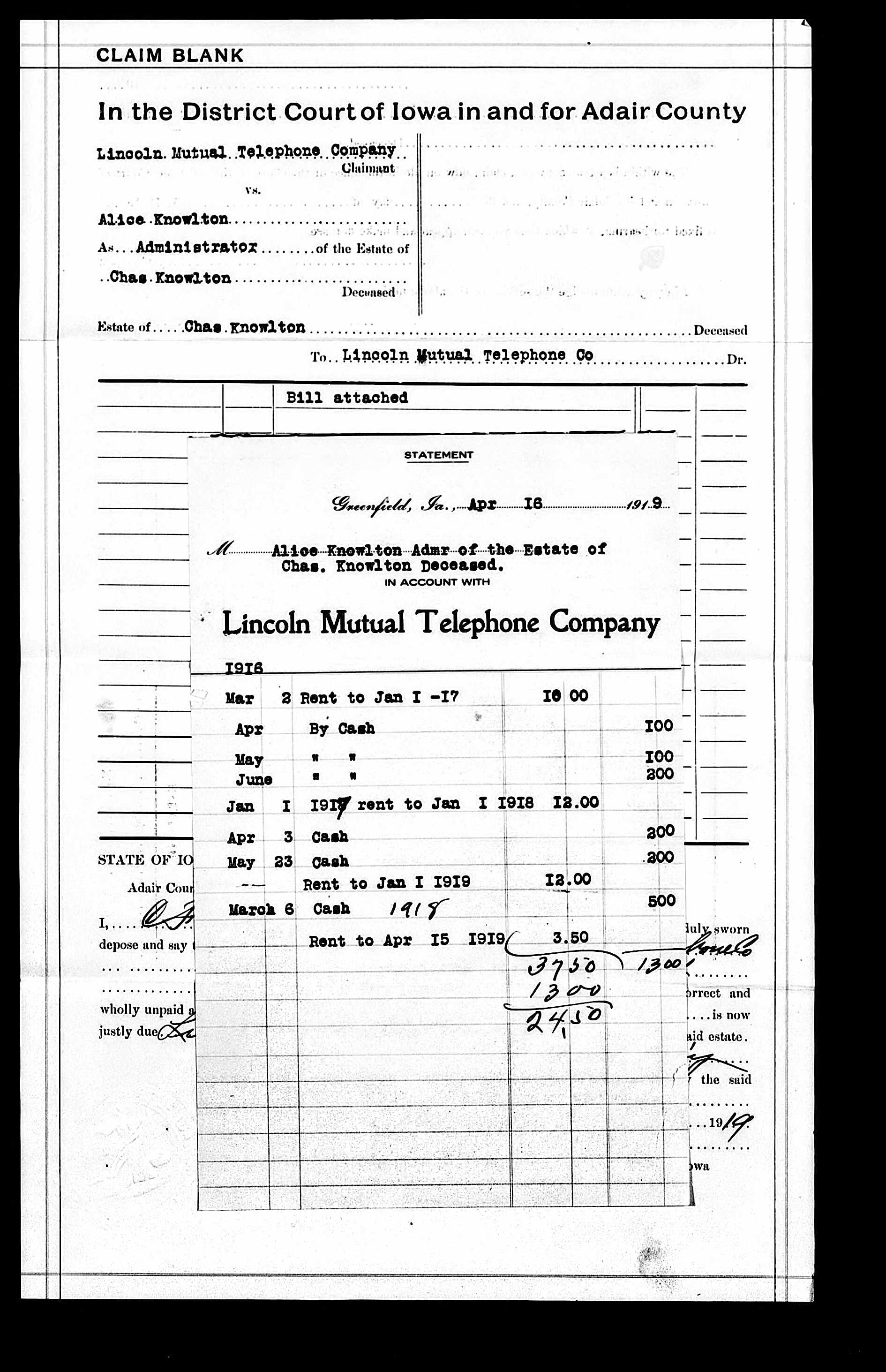 Chauncey Knowlton (b. 1795) was the first Knowlton to move west, ending up in the area of Mercer County, Ohio. It's possible his descendants are the same Knowltons who moved to Iowa and eventually adopted Dale Dippert.